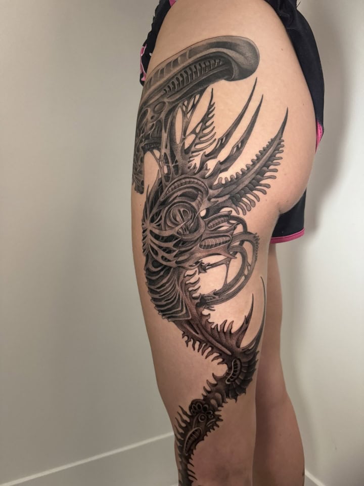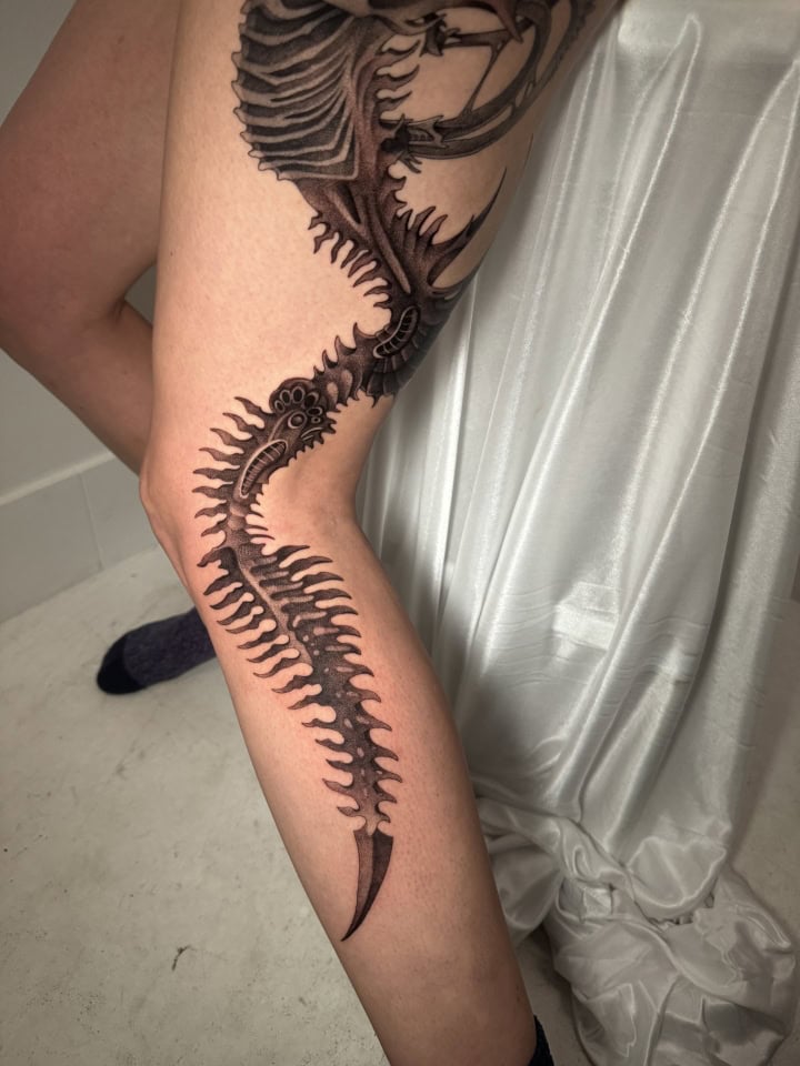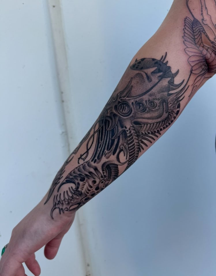 George has been tattooing since 2021 after completing an apprenticeship in Perth, Australia. George’s work has an illustrative style inspired by Neoclassicism and the technique of graphite drawing. This can be seen in her unique style of fine line tattooing which uses high contrast shading.